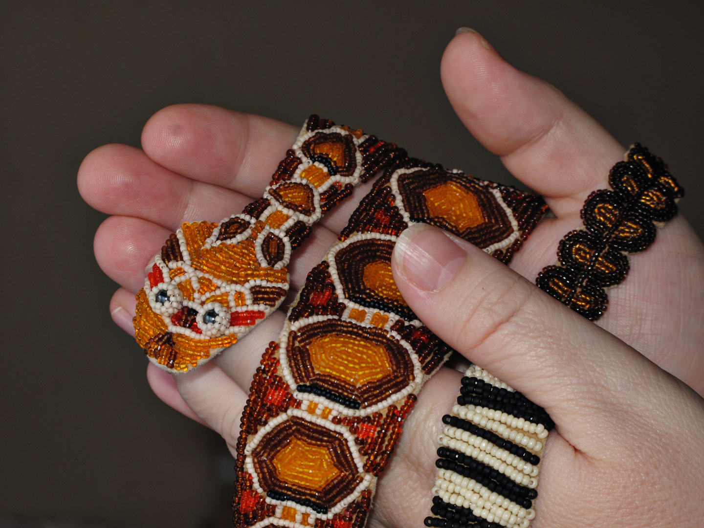 This is a slightly uncharacteristic piece for me. Usually even if someone wants a specific image they just tell me and I design and bead it. In June 2010 Michael Horse, painter, actor, musician etc, was my partner in a residency at the de Young museum in San Francisco. He wanted this. He gave me a drawing... told me where the horses were to go and what colors... In most ways this is his work... aside from the hours of actually making the piece, that is. Looks pretty good I think. Not sure I would work with anyone else this way but... he's one of a kind.